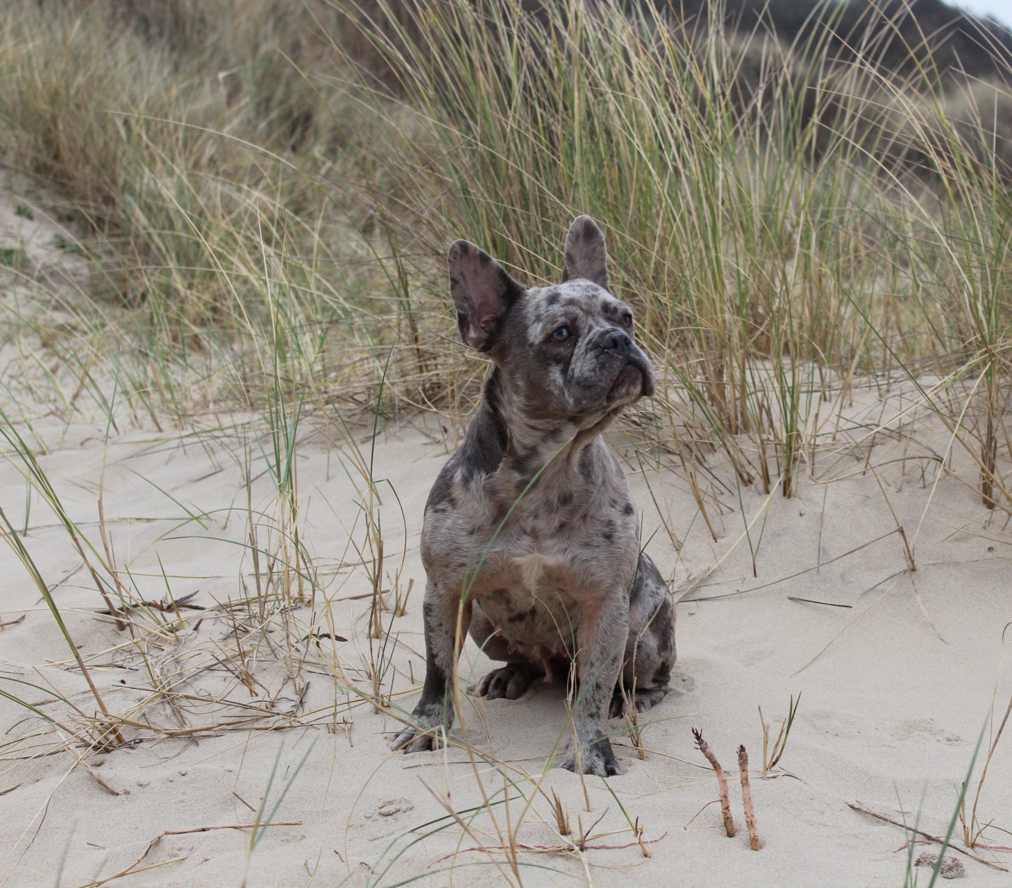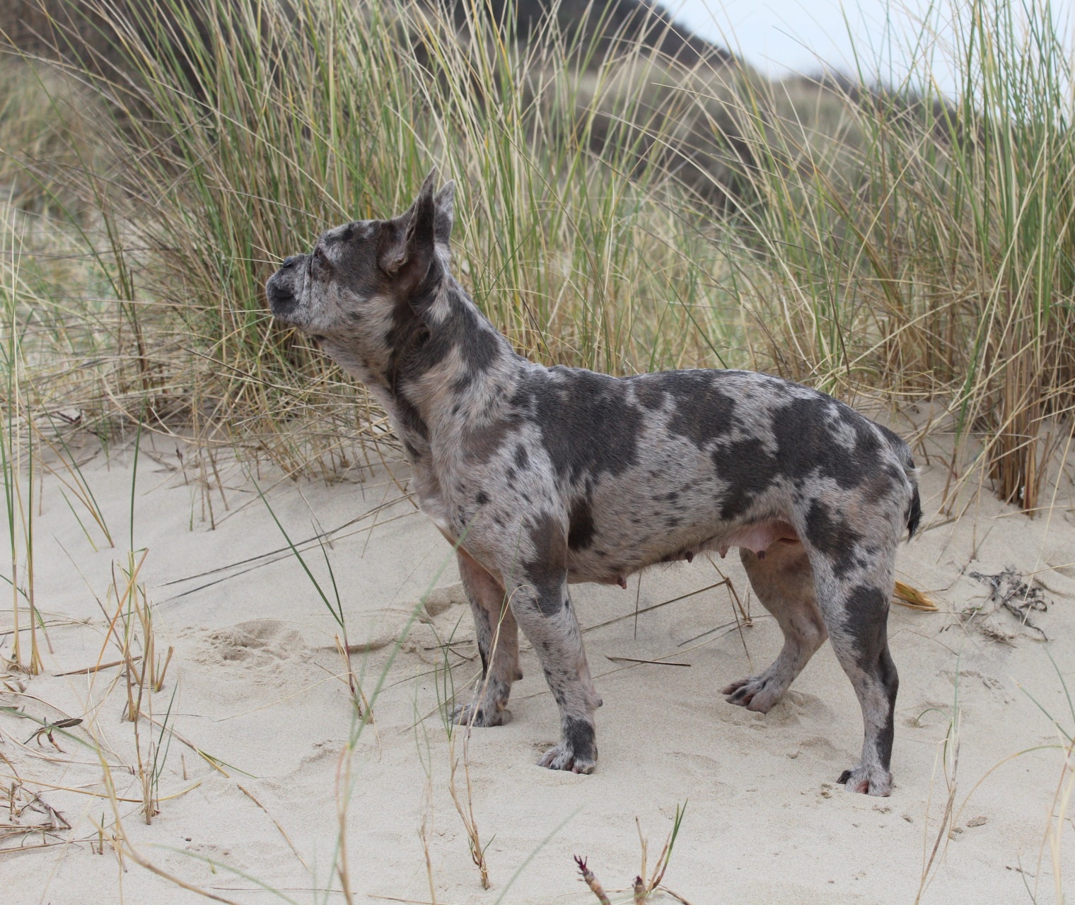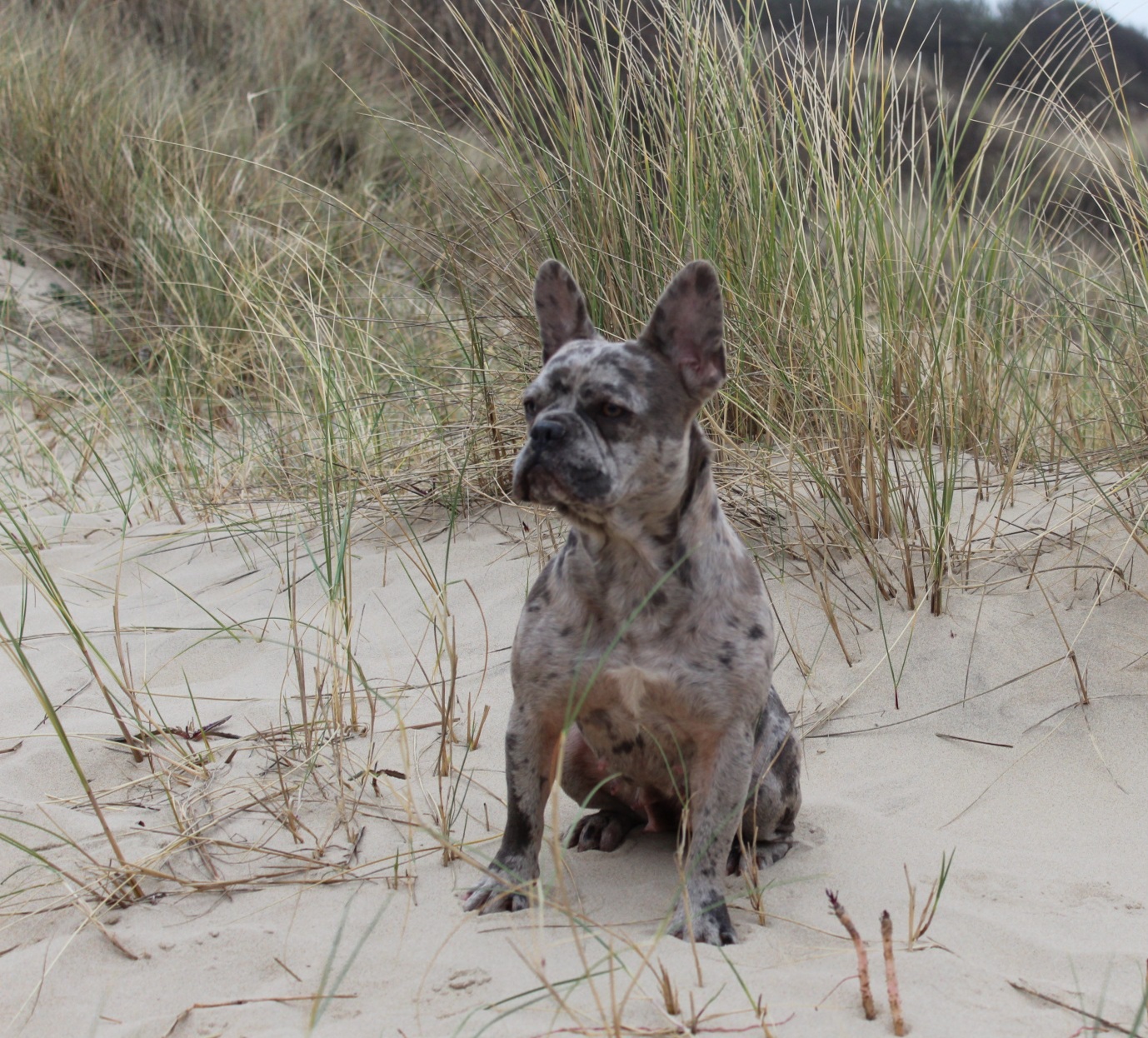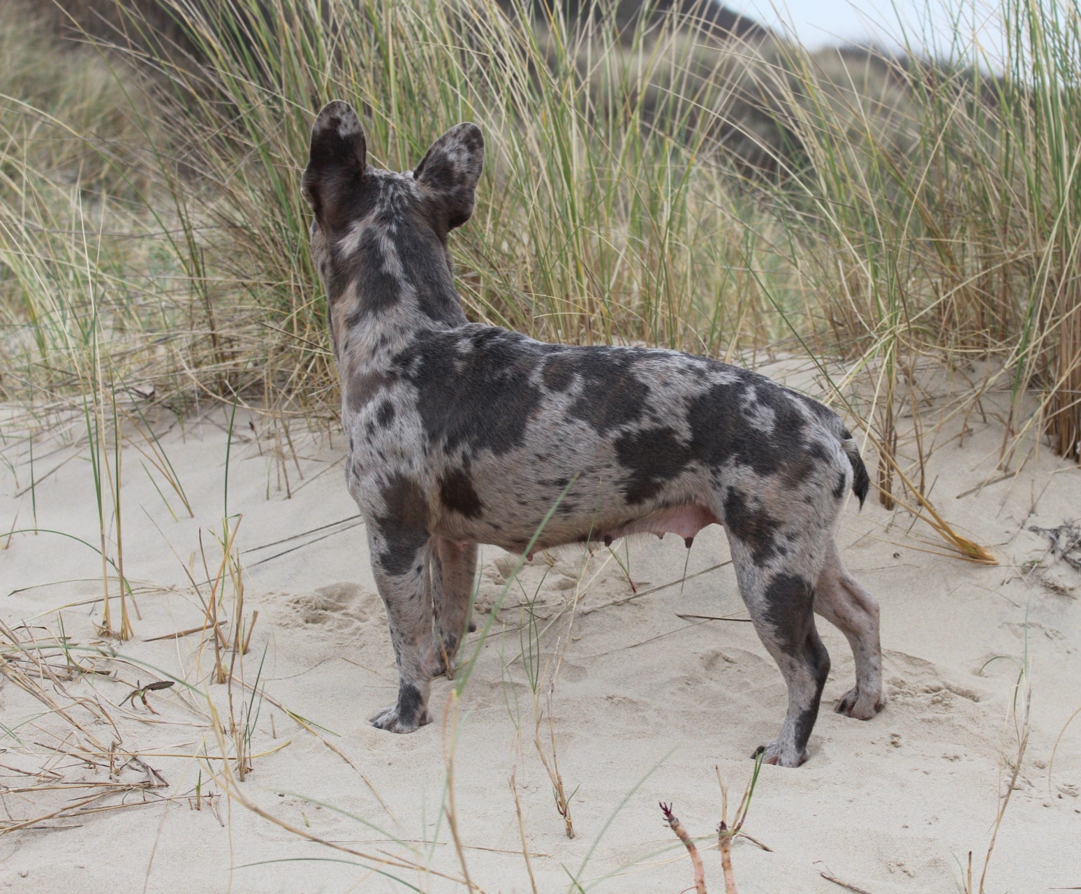 Ilvy ist eine französische Bulldogge in der Zeichnung lilac merle. Sie ist am 05.01.2020, bei uns, geboren. Sie hat ein Gewicht von 11,8kg und eine Schulterhöhe von 34cm. Ihr Vater ist eine französische Bulldogge und ihre Mutter ist unsere Martha. Sie hat einen extrem schlanken und langen Körperbau mit langen Beinen. Sie hat eine lange Nase die sie frei atmen lässt und das bei Wind und Wetter. Ausserdem hat sie eine Rute von ca. 12cm. Sie ist ein französisches Beispiel für Sportlichkeit. | |||||||||||||||||||||||||||||||||||||||||||||||||||||||||||||||||||||||||||||||||||||||||||||||||||
