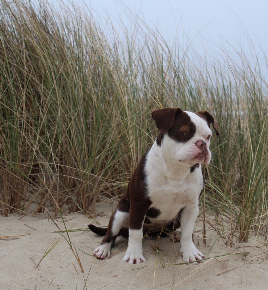 Dot ist eine (experimental) französische Bulldogge in der Farbe Schoko Mantelschecke. Sie ist am 18.06.2021, bei uns, geboren. Sie hat ein Gewicht von 17kg und eine Schulterhöhe von 38cm. Ihr Vater ist eine französische Bulldogge und ihre Mutter ist unsere Boo. Dot hat einen sehr sportlichen und langen Körperbau mit langen Beinen. Sie hat eine lange Nase die sie frei atmen lässt und das bei Wind und Wetter. Ausserdem hat sie eine Rute von ca. 20cm. Wenn Dot in die Zucht kommt, erwarte ich von ihr, sportliche Welpen mit einem langen und biegsamen Rücken, eine lange Nase mit offenen Nasenlöchern, teilweise eine längere Rute und Stehohren. | |||||||||||||||||||||||||||||||||||||||||||||||||||||||||||||||||||||||||||||||||||||||||||||||||||